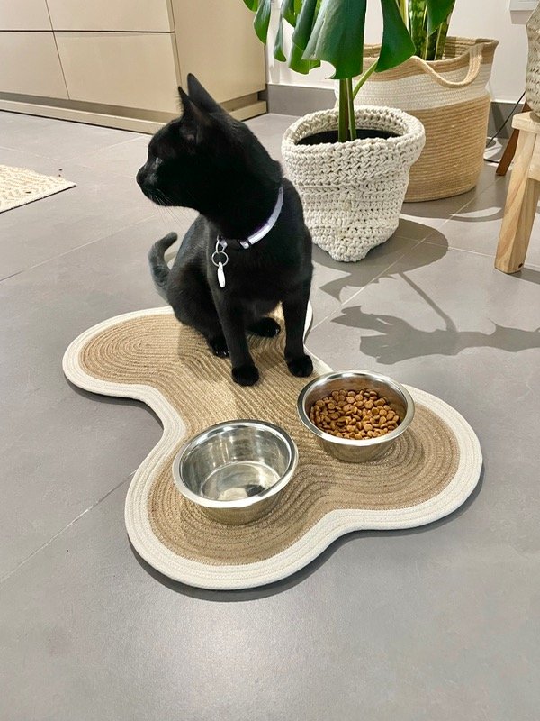 Alfombrita/ Tapete ideal para apoyar los comederos y bebederos de nuestras mascotas.